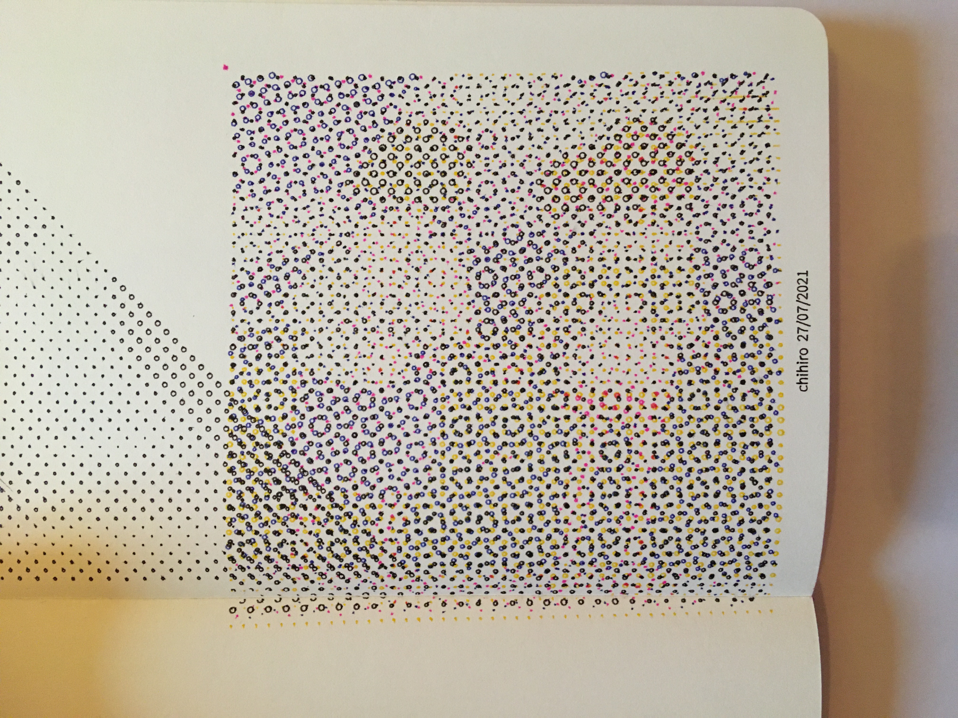 In traditional photographic halftoning, continuous-tones were broken down into discrete points using a coarse-woven fabric “screen” suspended in front of the camera’s photographic plate. I thought that this concept would be interesting for a mechanical plotter. Indeed, in traditional or digital halftoning the entire screen is processed simultaneously, whereas a mechanical plotter makes it possible to “draw” every single dot of the screen using pen and paper.